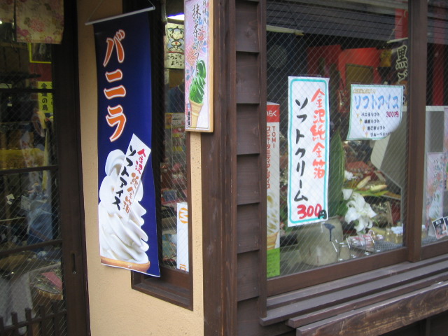 さて帰るかと駐車場への道沿いに金箔ソフトの看板ハッケン。