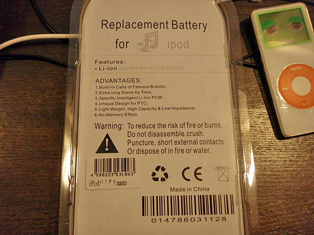 最近のnanoはビデオ撮影も出来るので買い替えも検討したんですが、その前に、いちおぅバッテリー替えてみて大丈夫だったらこっちを使い続けようかな、とゆことで早速怪しい中国製の交換セットを購入。