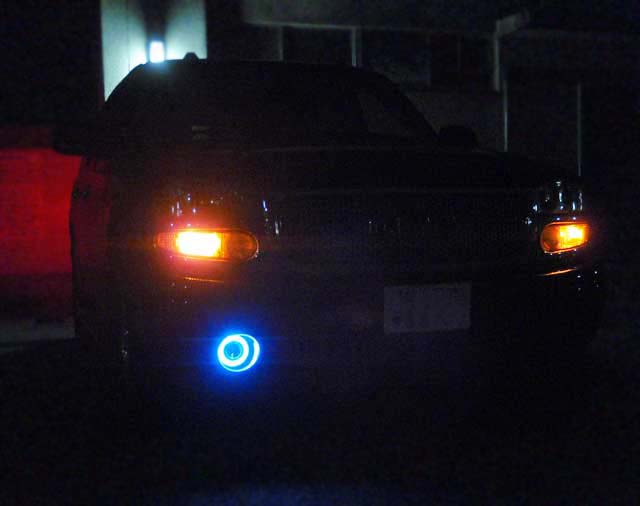 さて、そゆわけでいよいよフォグランプが片方完成したので夜を待って点灯試験を執り行いました。運転席側はまだ純正なのでスモールでは暗いままです。