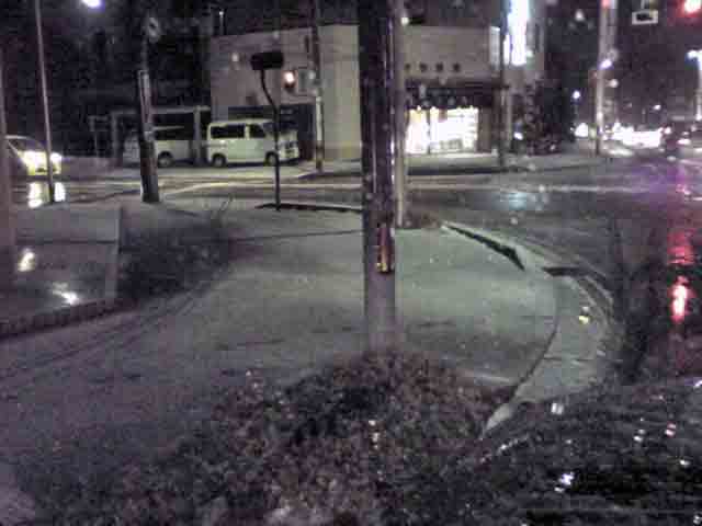 そうとは言っても昼間にチラチラ降る程度なら道路に積もったりしないからまだへーキだとか思ってタイヤはそのままで市内をウロウロしてたんですが夕方から本格的に降って来て気温も下がってるのでうっすらと積もり始めたんですねぇ。。