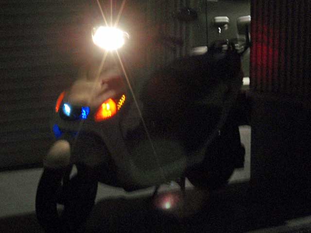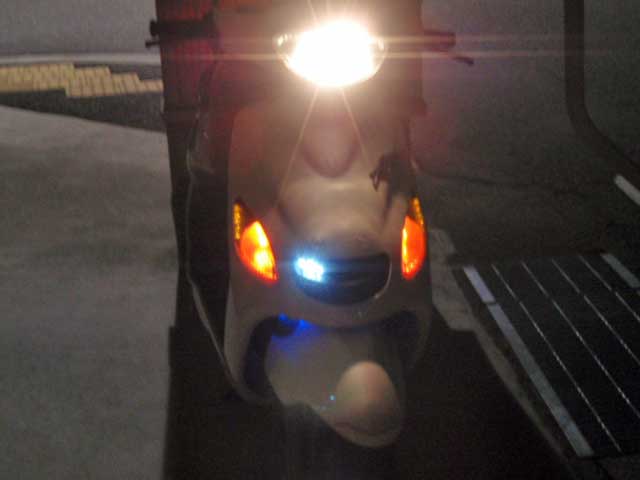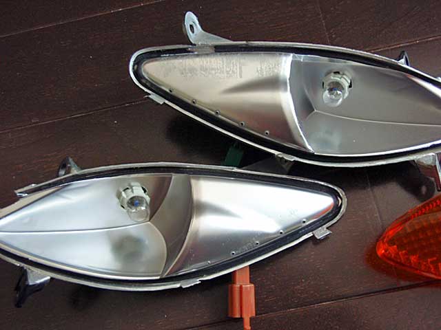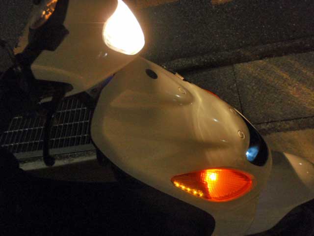 さて今度は、最近日が短いので「仕事の帰りはいつも真っ暗」ですから被視認性をもっと上げときたいなぁ、とゆことでフロントグリルに入れた白LEDだけでは飽き足らずにウインカーに黄色LEDを入れてみました。
