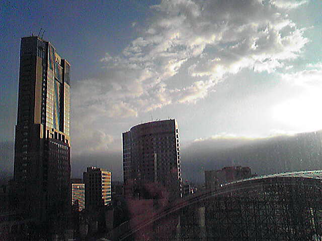 雲の上から神々しい光が射して、左の日航ホテルを照らしてました。