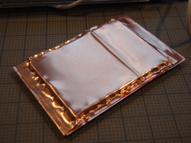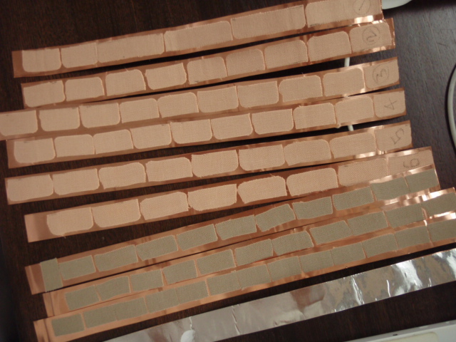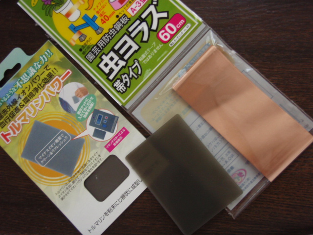 まぁ、あんまり出っ張るのもどぅかと思うので、幅2cmに銅板を切ってそこにトルマリンとチタンを貼って、大外にアルミ板と、盤石の態勢で作ってみました。