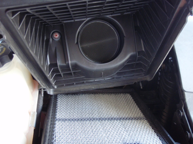 そんなわけで、どこに貼ろうか考えたんですが、こないだ開けたエアクリーナボックスの、この丸いとこに円形に貼ろうかと。
