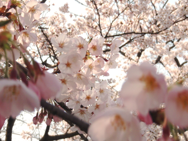朝、自転車で登った山の上はまだ枯れ山で雪が残ったりしてましたが、市内は桜も満開でした。