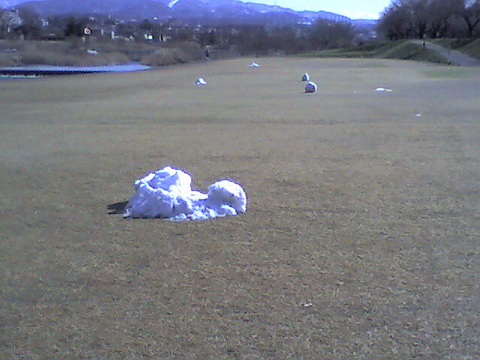 雪が溶けたら妙にシュールな風景が残りました。この画像だとあんまりシュールぽぃのは表現出来てませんけど..