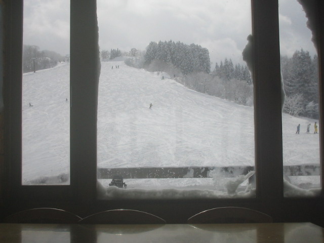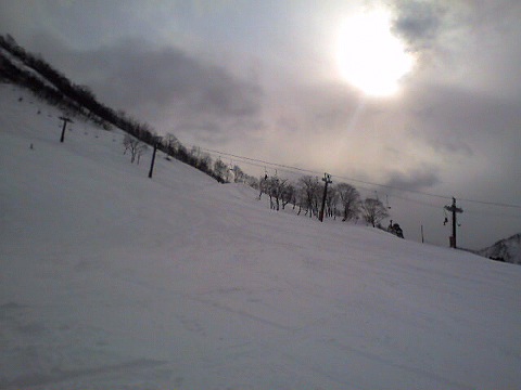 リフトで上がった上の方は思ってた以上に広くて、緩急取り混ぜてコースどりも色々あって、積雪たったの120cmであまり期待してなかった雪質もこのごろの冷え込みで申し分無かったし、勿論ゲレンデはガラガラだしで大変満足でした。