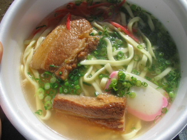 どちらもたぶん近場で気軽に食べれないだろうってことで選んだんですが、栗も素朴な味で美味しかったし、沖縄そばも豚の角煮がもの凄くおいしーかったです。