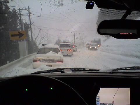 結局1時間も待たなくてすれ違えるようになりましたけど一緒に渋滞にはまってた人の話では冬の風物詩だそうで、もうちょっと広くしてよ、暫定税率使って、って感じでした。