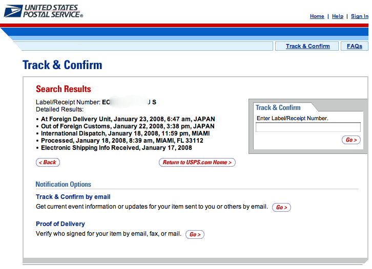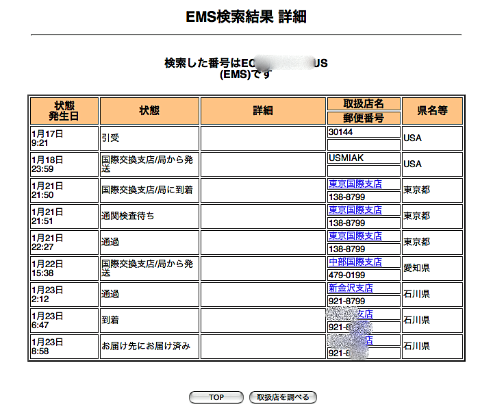 商品はEMSでUSポスタル→日本郵便で運ばれて来ました。