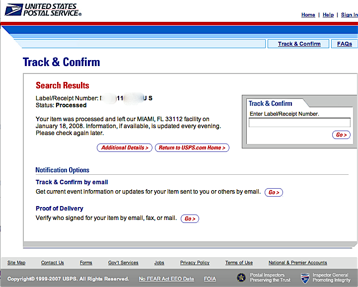 向こうから発送したよとメールが来たので早速トラッキングしたのが上の画像で、USPSのホムペです。