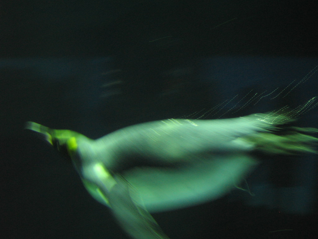 画像は海遊館にいた、水中遊泳中のペンギンです。