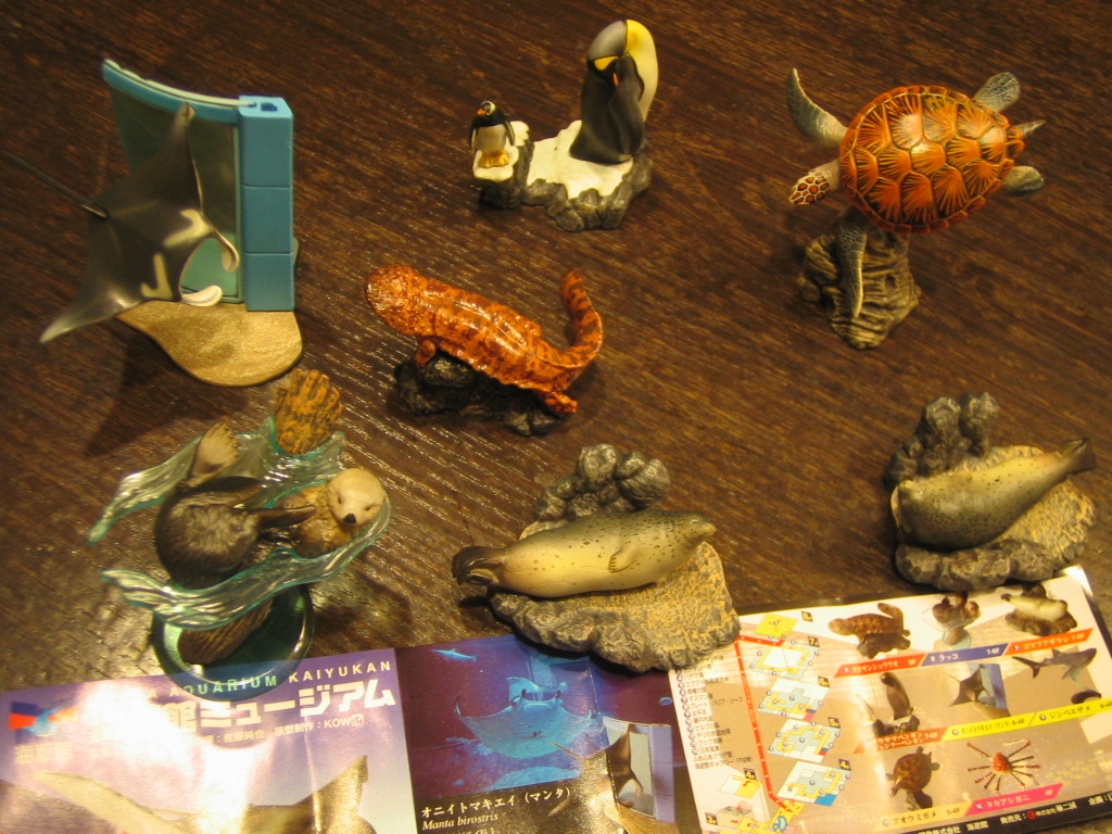 で、その海遊館オリジナルのガチャガチャ8種類に対して、1,400円を投じて買い漁ったのがコレ。↓