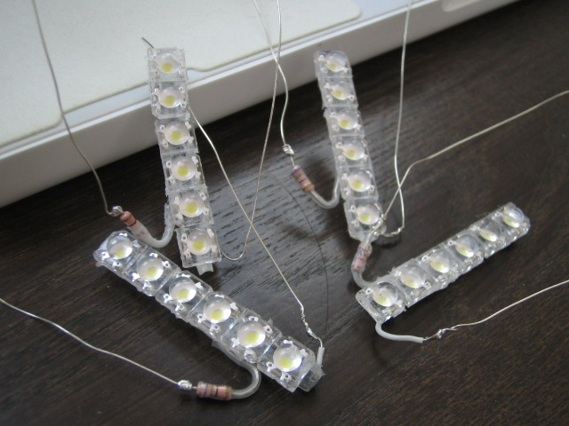 で、以前作って失敗作となったDRL用のLEDバルブをバラして、Flux白6個1組が8組あったんですが、これの半分をドアのカーテシに使ったのが8月17日でした。