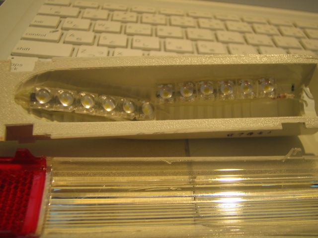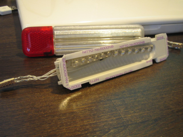 以前作って失敗作となったDRL用のLEDバルブを分解して白Flux LED6個1セットを流用する場所を探してたんですが、ちょうどいいところを見つけました。