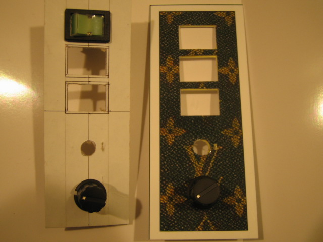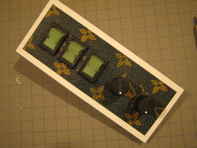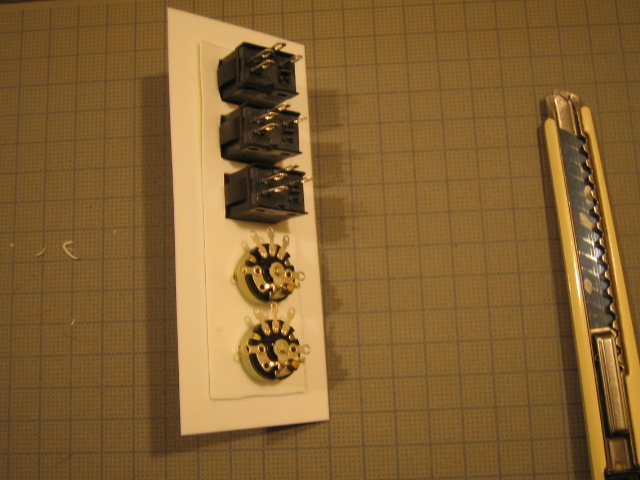 LED照明付きスイッチとスイッチ付きボリュームをプラ板にセット。