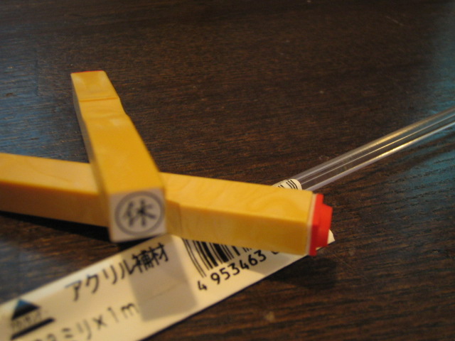 3mm角のアクリル材とお休みハンコ2個。