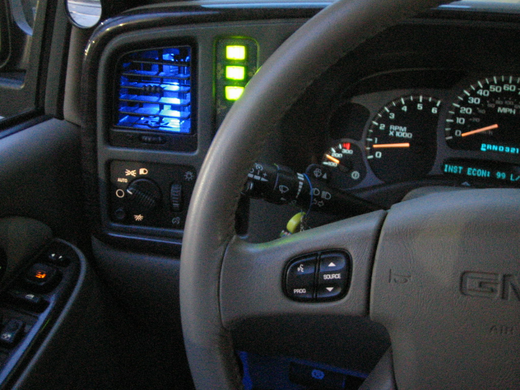 ダッシュパネルのエアコンダクト4コに2mmx3mmのチップLEDを2発ずつ。