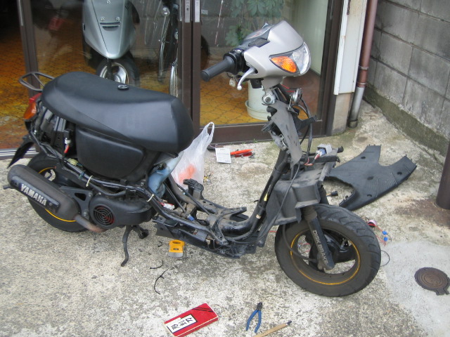 暫く様子をみようと昨日引き取って来た原チャリですが、さらにさらに大きなボロくさい音が出るようになってきました。