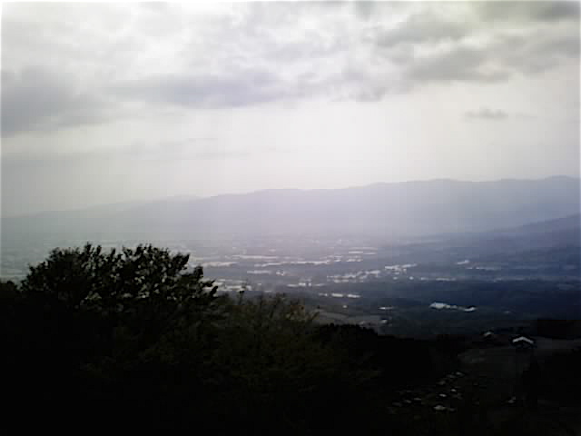 下は、頂上ゴール地点から富山県側の散居村を望んでいます。