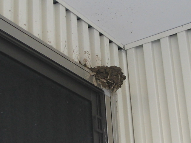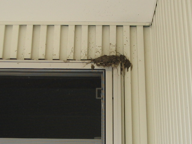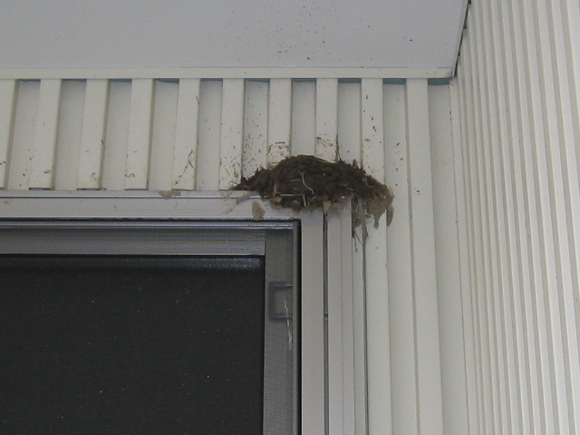 車庫の中に入れないのは判ったみたいで、今度は車庫の前の軒先に営巣するつもりらしい。