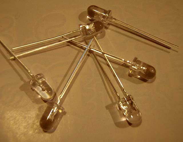 材料は5mm白LED片側3個ずつで計6本。