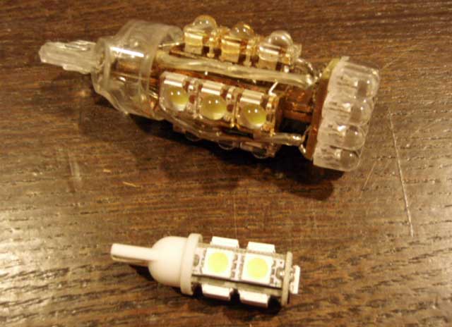 自分で作っても多分コレくらいの数のLED使って作るだろうし、ちょっと試してみよっかなと思ったのと、T20規格ばかりでなかなか3157規格のバルブが無かったので、それならT10使って3157にすれば簡単そうだなと思ったので。