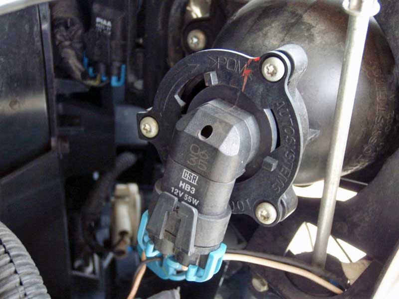これがHB3バルブが刺さってるヘッドライトの裏側ビューです。