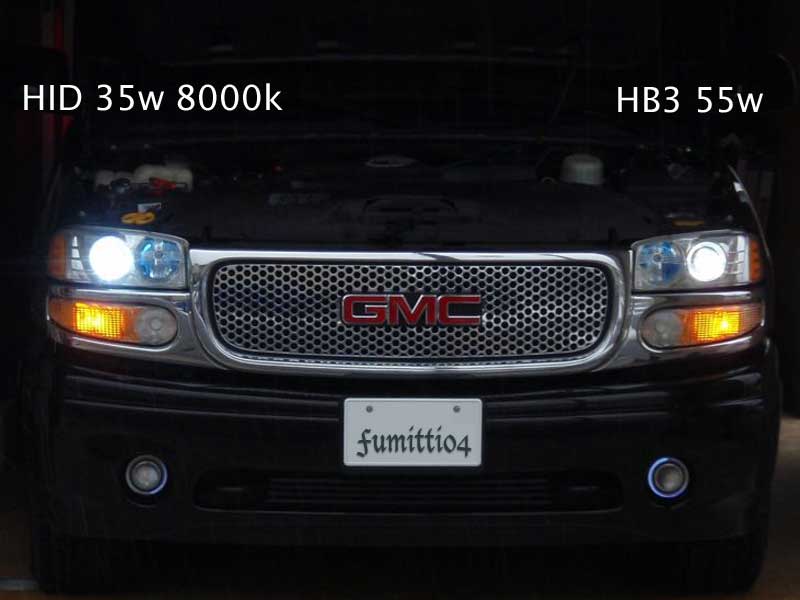 向かって左が大陸製HID、右が「いちおぅ高効率」HB3バルブ。