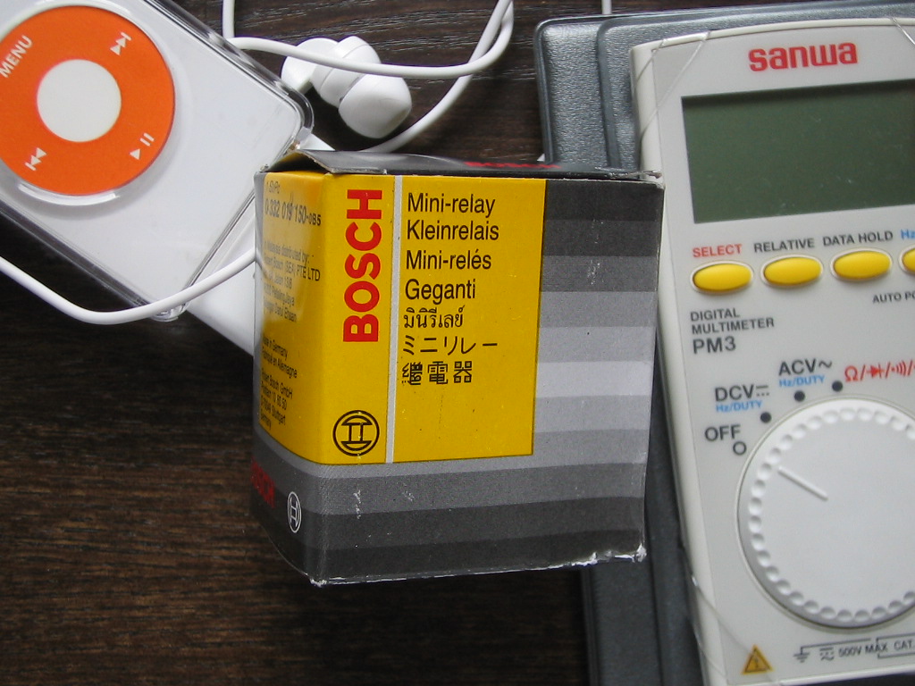 その後はアクセサリ電源からモニタ2つ分(と映像分配増幅器の電源)も取るのは気に入らないのでバッ直するかな〜、でもめんどくさいし〜と考えてたら、アメ車の常時電源なシガープラグをリレー使ってアクセサリ電源化しようと、リレーを探して作業中に、別のシガープラグもついでにアクセサリ化することにしたり。