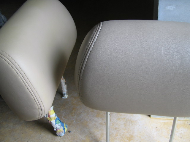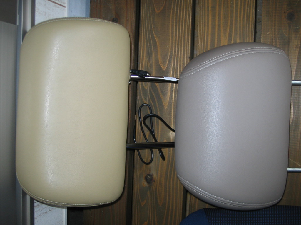 *左がモニター組込み済みの中国製ヘッドレストで塗る前、右が純正。