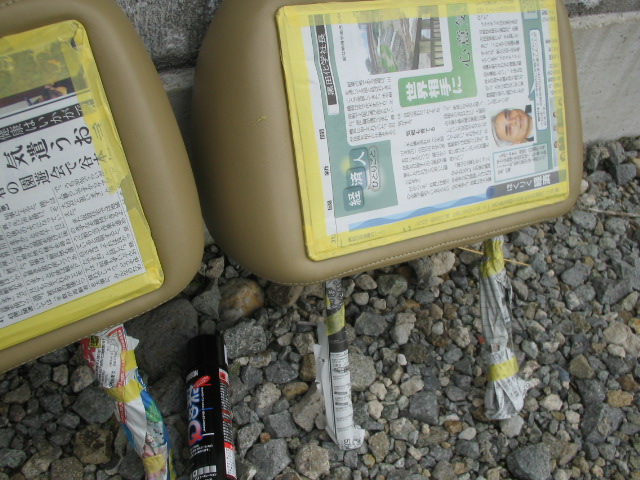 モニター組み込み済みのヘッドレストを純正と交換して、映像コードと電源コードを接続して終わりっ!だったんですけど、商品が届いたときから「ちょっと色違うけどそのうち見慣れるだろぅ」と思ってたのが、いざシートに取り付けてみるとメチャメチャ浮いて見えて、しょーがない、色塗るか、とスプレー買いに行ったり、売り場でどの色にするか迷ったりで時間を取られ、色塗って乾かすのに時間を取られ。。