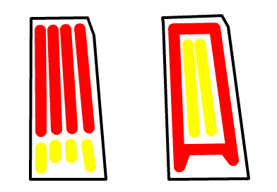 気持ち的には、黄色ウインカーで縦2列は面積が多いし1列にしたい。