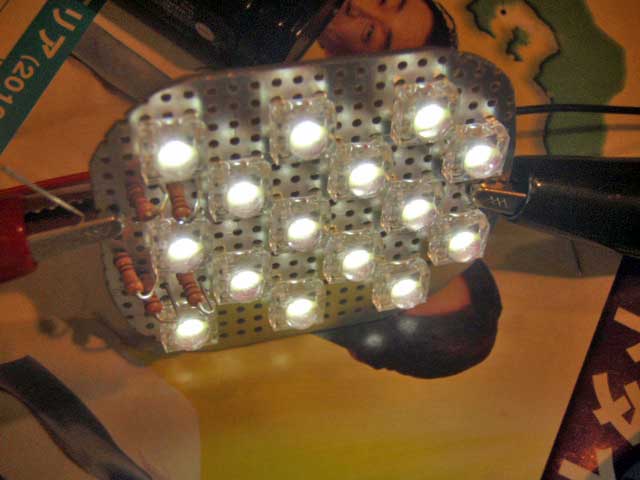 通電の確認が出来ればいいだけなのでコレで十分なんですが、試しに2個直列、抵抗無しで繋いでみます。