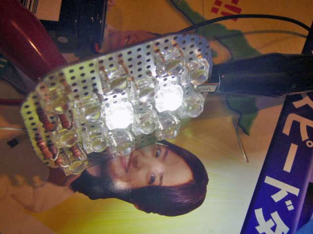 9V電池ですから車に繋いだときよりもユルく光ります。