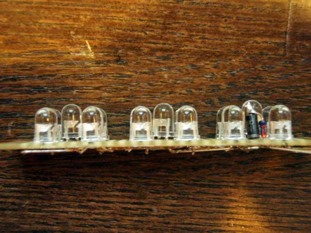 横から見ると、5個ずつ配置したLEDの真ん中のやつだけ若干飛び出してます。