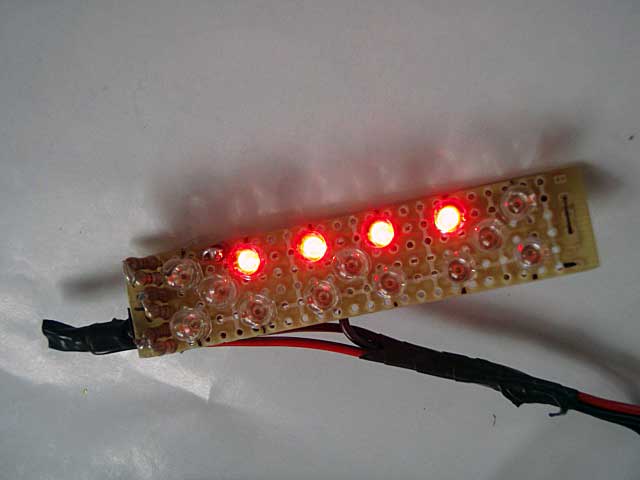 と光らせよかなと。赤LED5本直列は、ブレーキのときは直流なんでパッと明るいですが、テールだと交流だしアイドリングであまり明るくないとゆ経験から、今回4直列としてみました。