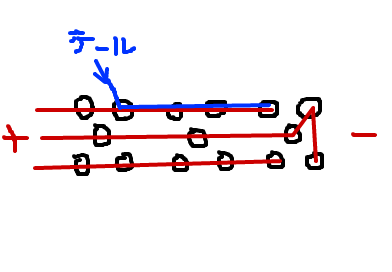 とゆーことは、この一見五個一組に見える固まりが1直列のセットに見えますが、配線はちょっと違ってます。