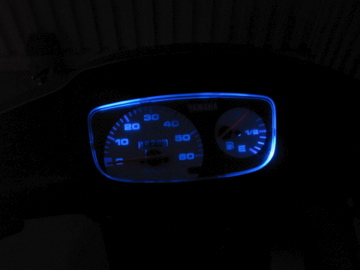 メーター照明は青チップLEDを使ってこんなふぅに妖しくなって気に入ってます。